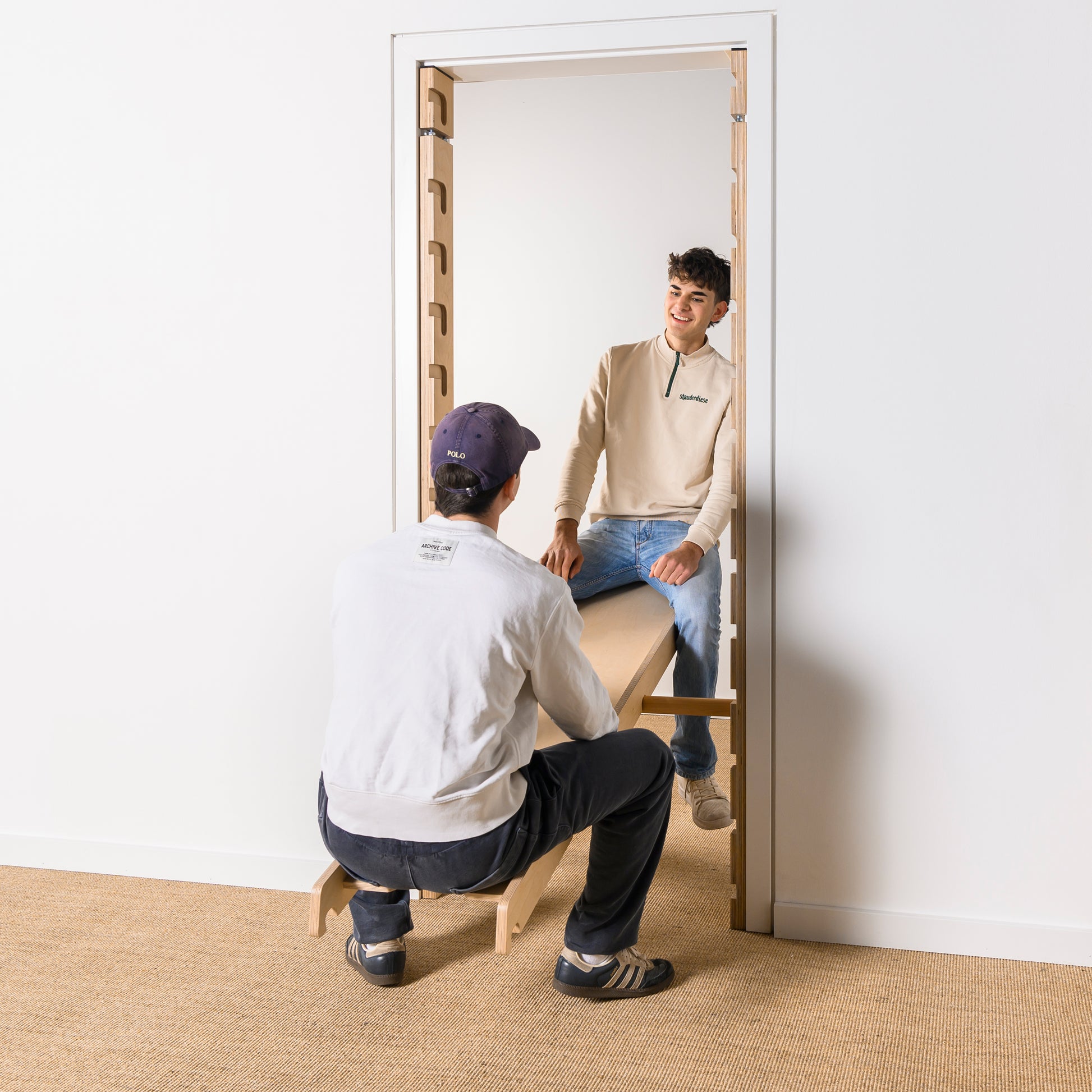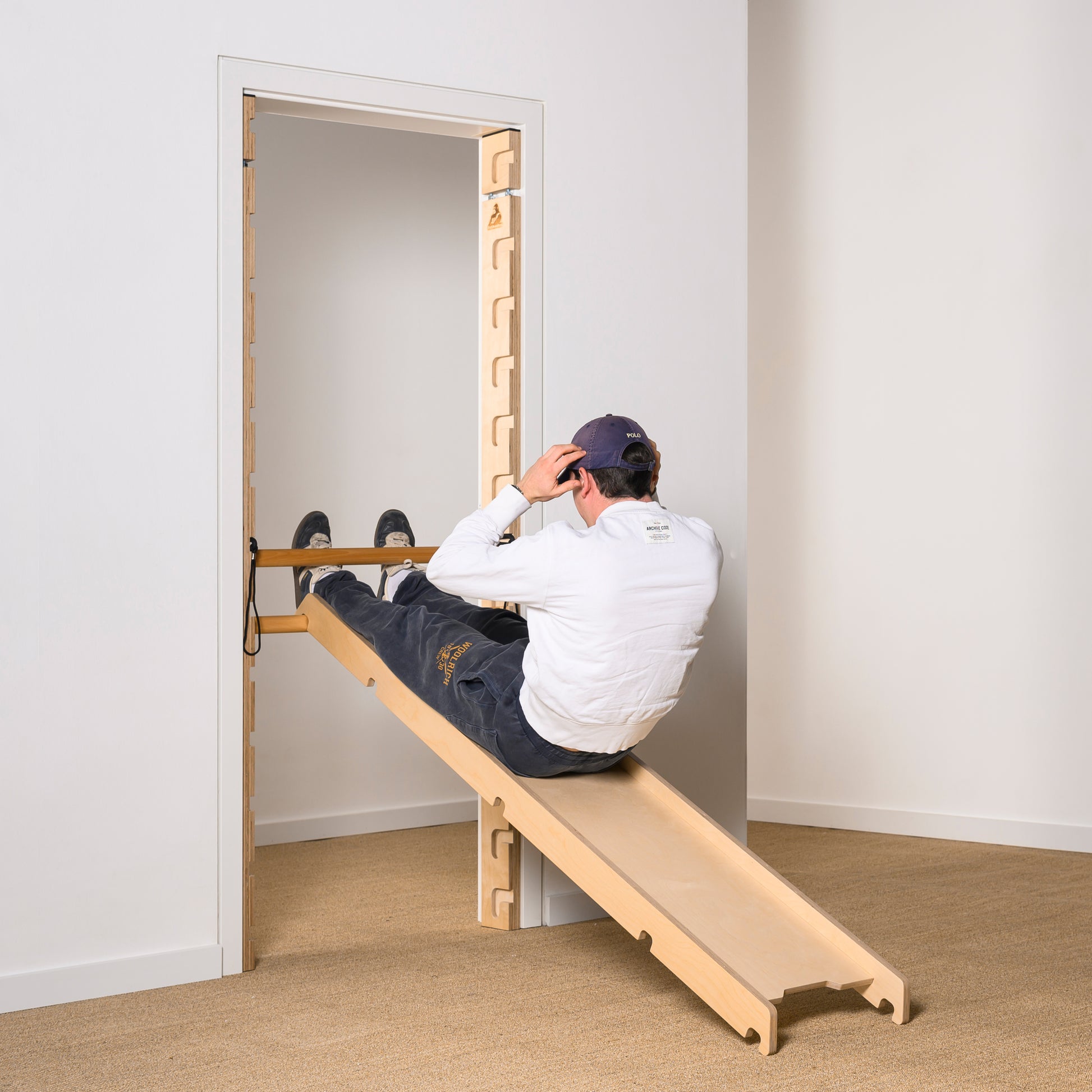Hochwertige Multibank aus Birke-Multiplex, seidenmatt lackiert, für vielseitiges Training und Bewegung im Innenbereich.