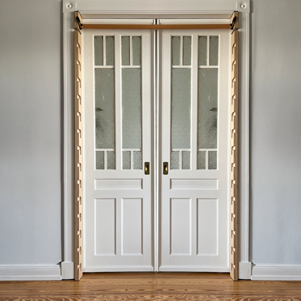Ziehst du in eine Wohnung mit einem höheren Türrahmen, fertigen wir dir gerne neue, längere Kopfelemente an. Sag uns einfach Bescheid, wie hoch die neuen sein sollen, und wir kümmern uns darum. Je nach Höhe und der Anzahl der Sprosseneinschübe kostet das zwischen 20 und 35 Euro.